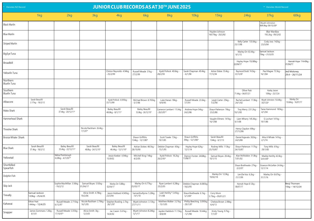 Discover the exceptional achievements of our young anglers in the Junior Records section. From impressive catches to standout performances, this page highlights the top records set by our junior members. Celebrate their successes and see how they’re making waves in the world of sportfishing!